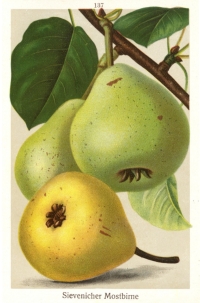 Die Sievenicher Mostbirne ist eine wertvolle und robuste Wirtschaftsbirne mit geringen Standortansprüchen, erfordert jedoch eine schnelle Ernte und zügige Verarbeitung nach der Reife. Diese Sorte ist auch in der offiziellen NRW-Vorschlagsliste alter Streuobstsorten enthalten.